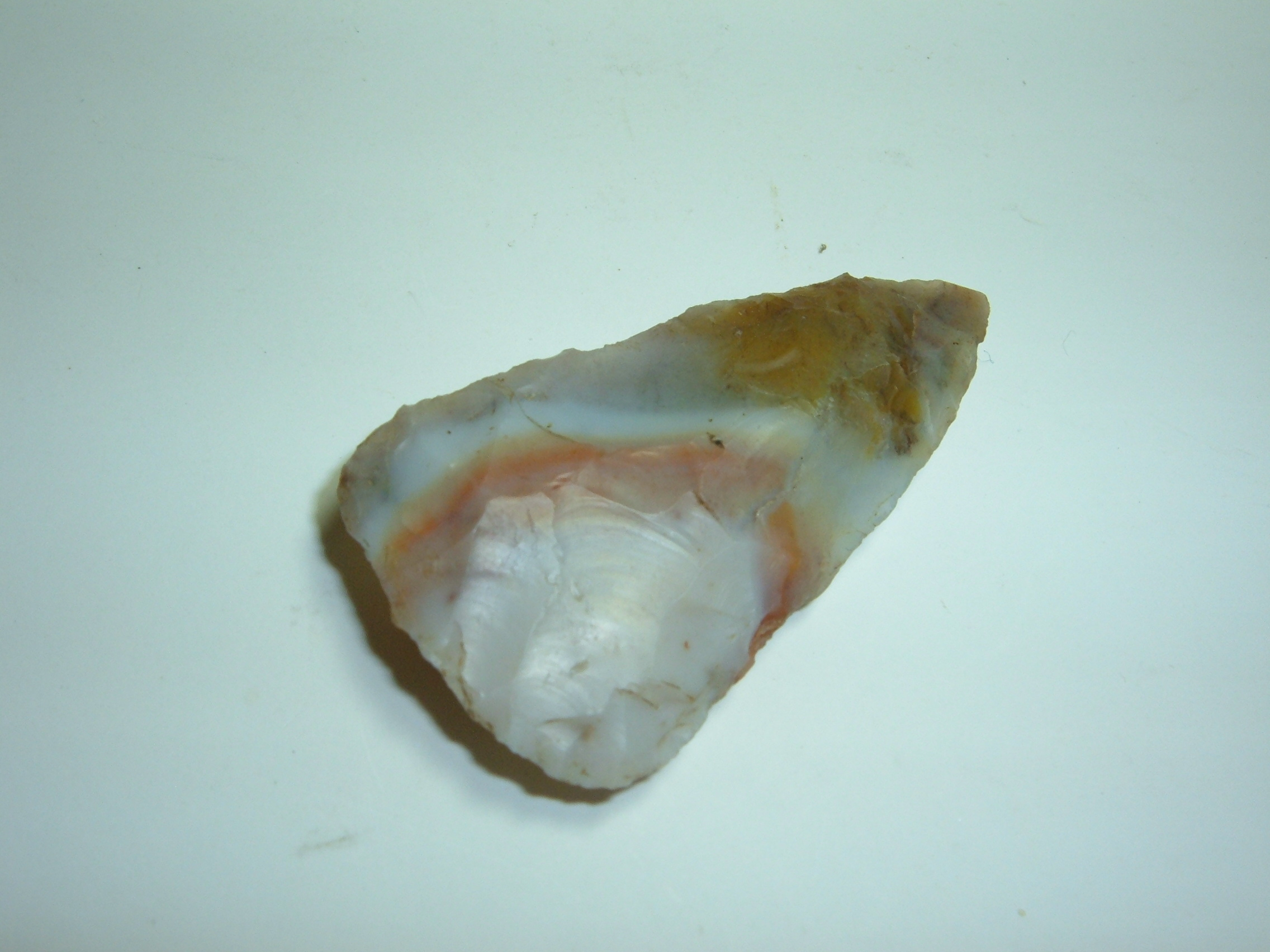 OFFERED HERE IS A POINT PICTURED IN "THE ARTIFACT COLLECTION OF ROBERT CONVERSE , IT IS PICTURES ON PAGE 142 .THIS EXCEPTIONALLY COLORED HOPEWELL CACHE BLADE WAS FOUND IN LICKING CO.OHIO AND IS MADE FROM EXOTIC FLINT RIDGE FLINT! IT MEASURES 1 3/4" AND HAS BEAUTIFUL ORANGE GREENS AND PURPLE COLORS! INCREDIBLE RELIC!