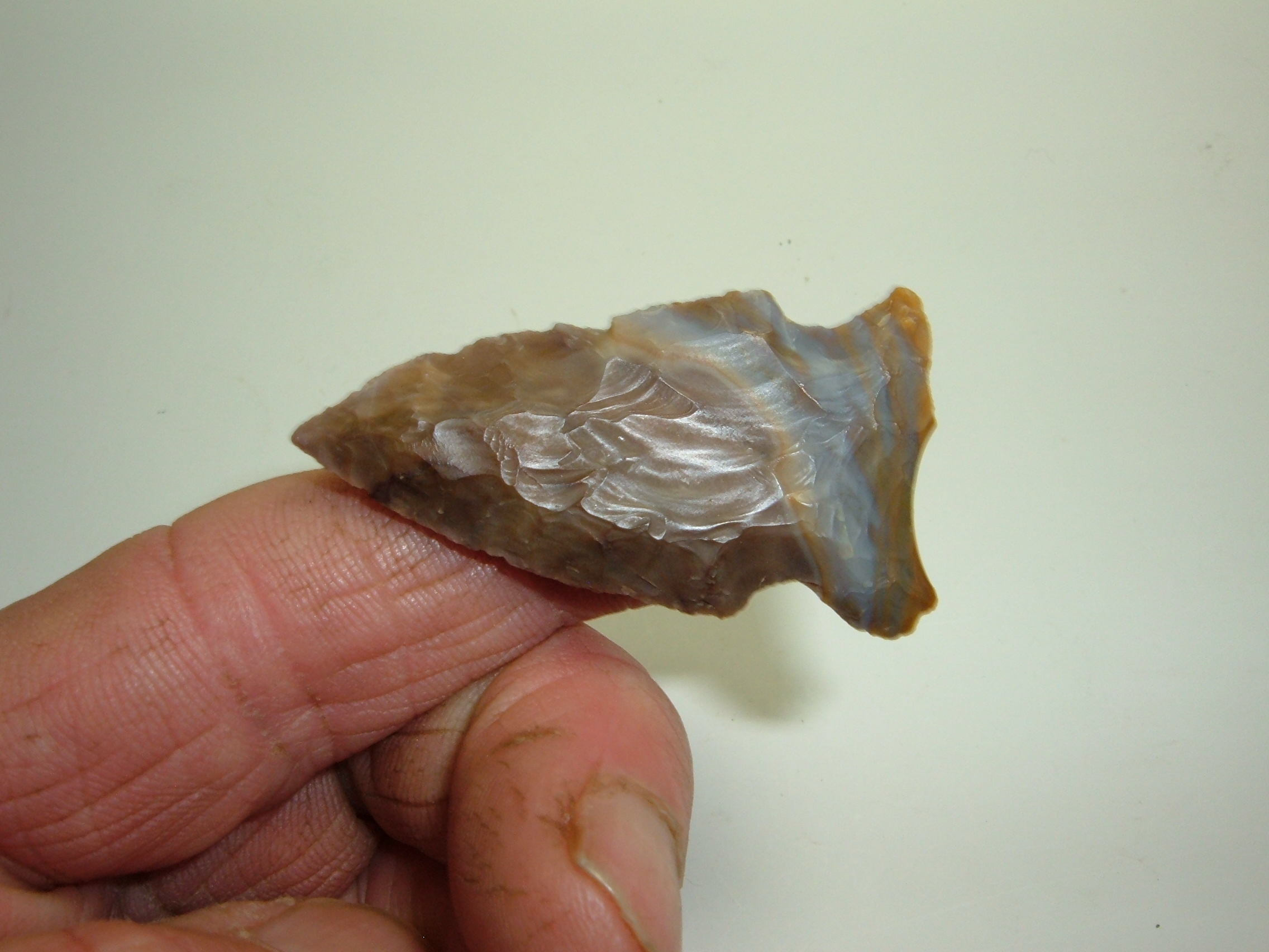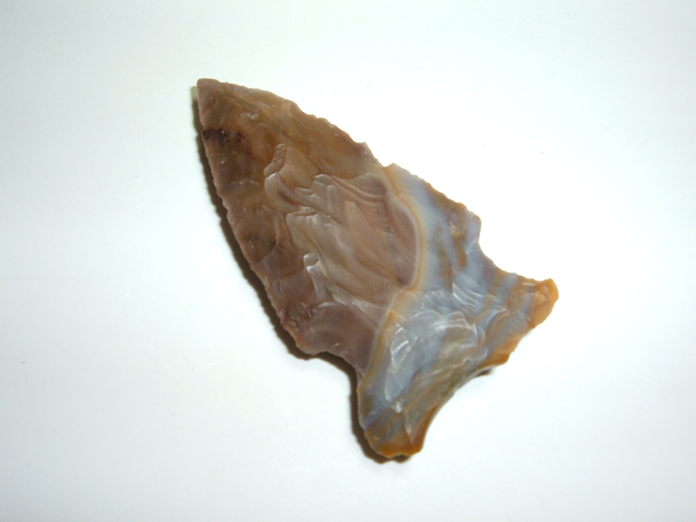 THE COLOR ON THIS FINE EX BOB CONVERSE COLLECTION ARCHAIC CORNER NOTCH IS AMAZING! REDS ,PURPLE AND EVEDN YELLOW SO NICE IT REMINDS ME OF HORSE CREEK CHERT! PICTURED ON PAGE 142 OF "THE ARTIFACT COLLECTION OF ROBERT CONVERSE IT MEASURES 1 7/8" AND IS GEM FLINT RIDGE! IT WAS FOUND IN FAYETTE CO.OHIO AND IS JUST PLAIN BEAUTIFUL COLOR!