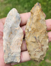 A real nice pair of blades from Calhoun Co, IL. Nicely made blades that show extensive use. One has a spokeshave and the other has vivid swirls. Largest measures 3 3/8 inches long. Great for any frame!