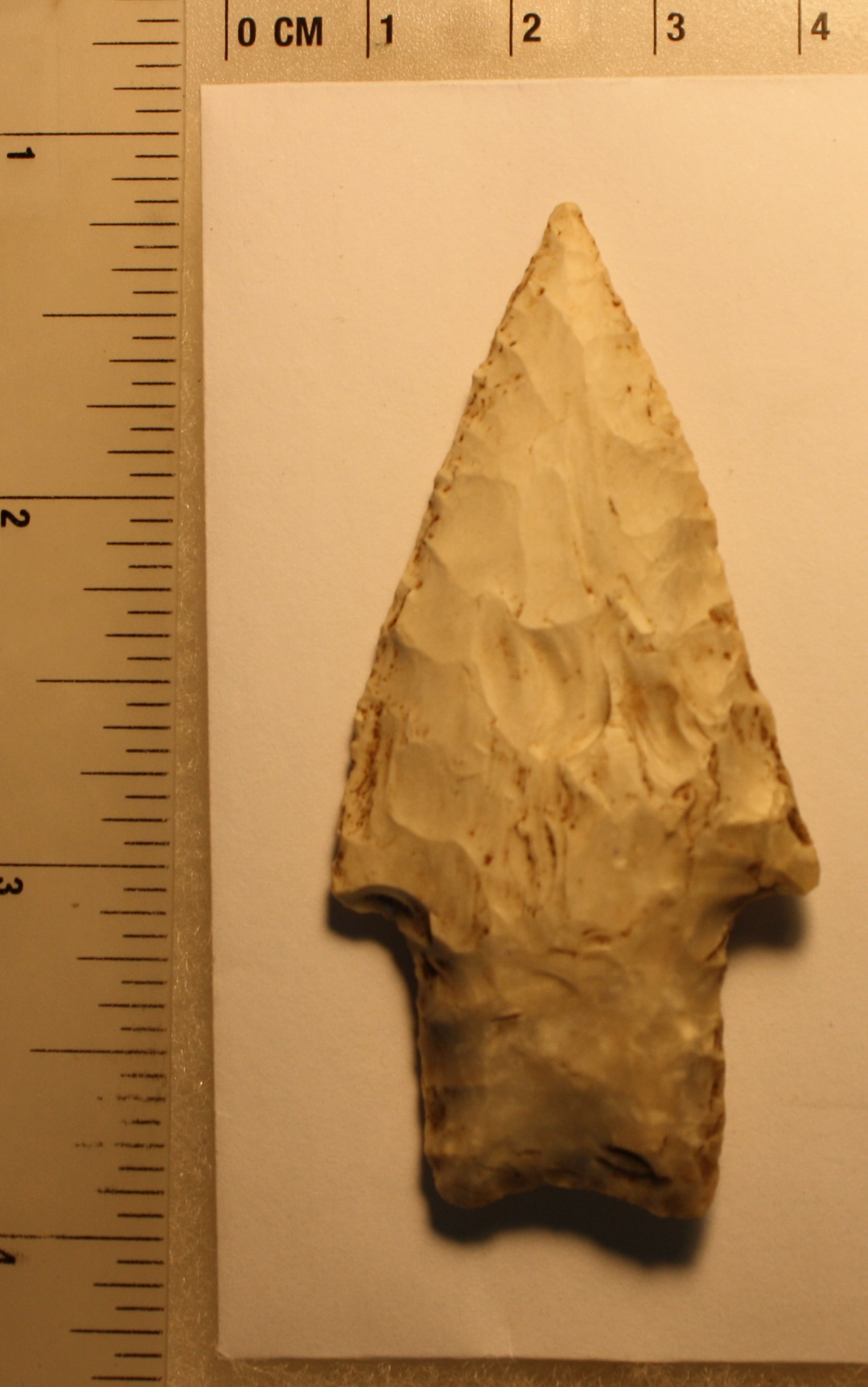 This is made from a light gray Edwards Chert that developed a high degree of whitish patina through a few thousand years in the soil.