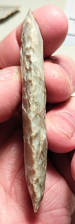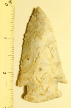 This well-formed, Barbed Hardin point is made from Burlington flint and was found in Pike Co., Illinois. It comes with a Dwain Rogers COA.