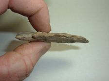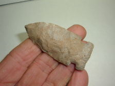 OFFERED HERE FROM OUR PERSONAL COLLECTIONS IS THIS NICE ARCHAIC SIDENOTCHFOUND IN ATHENS CO,OHIO AND IS 2 1/2"! MADE FROM BISHER CHERT, IT HAS WRITTEN BOUGHT REDDEN 86 ON ONE SIDE AND IS A VERY NICE ARCHAIC EXAMPLE!