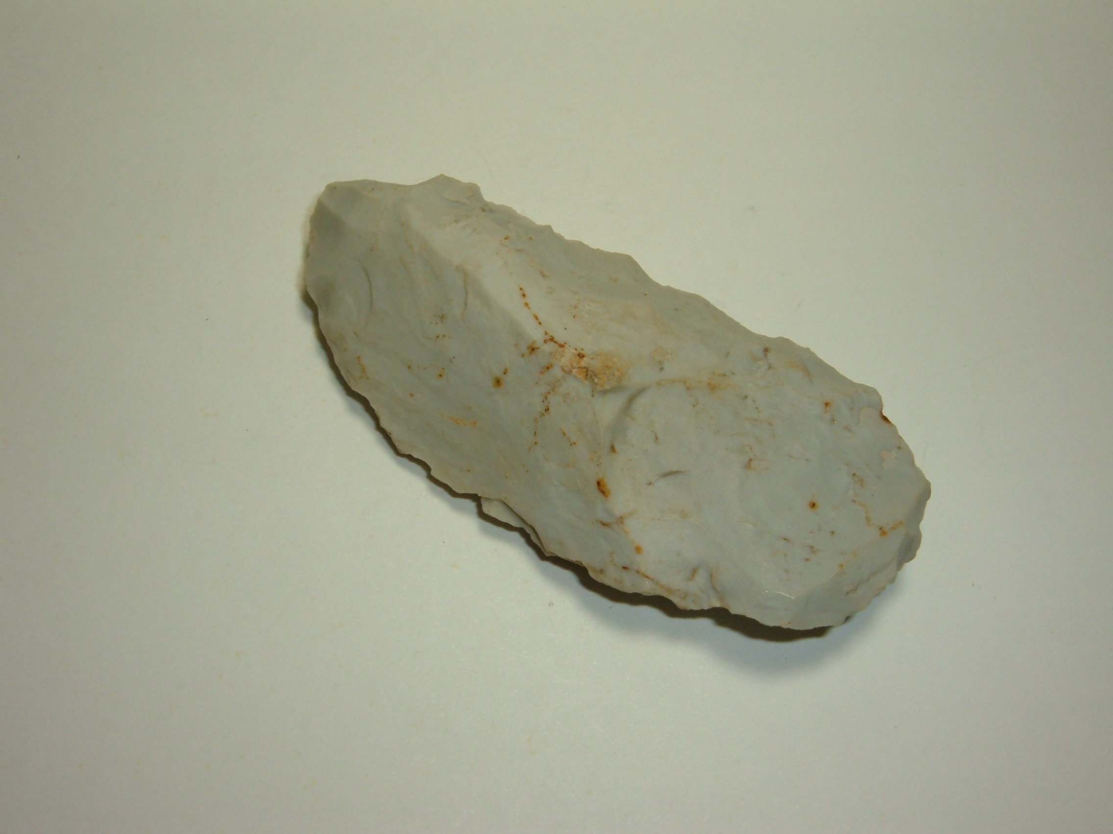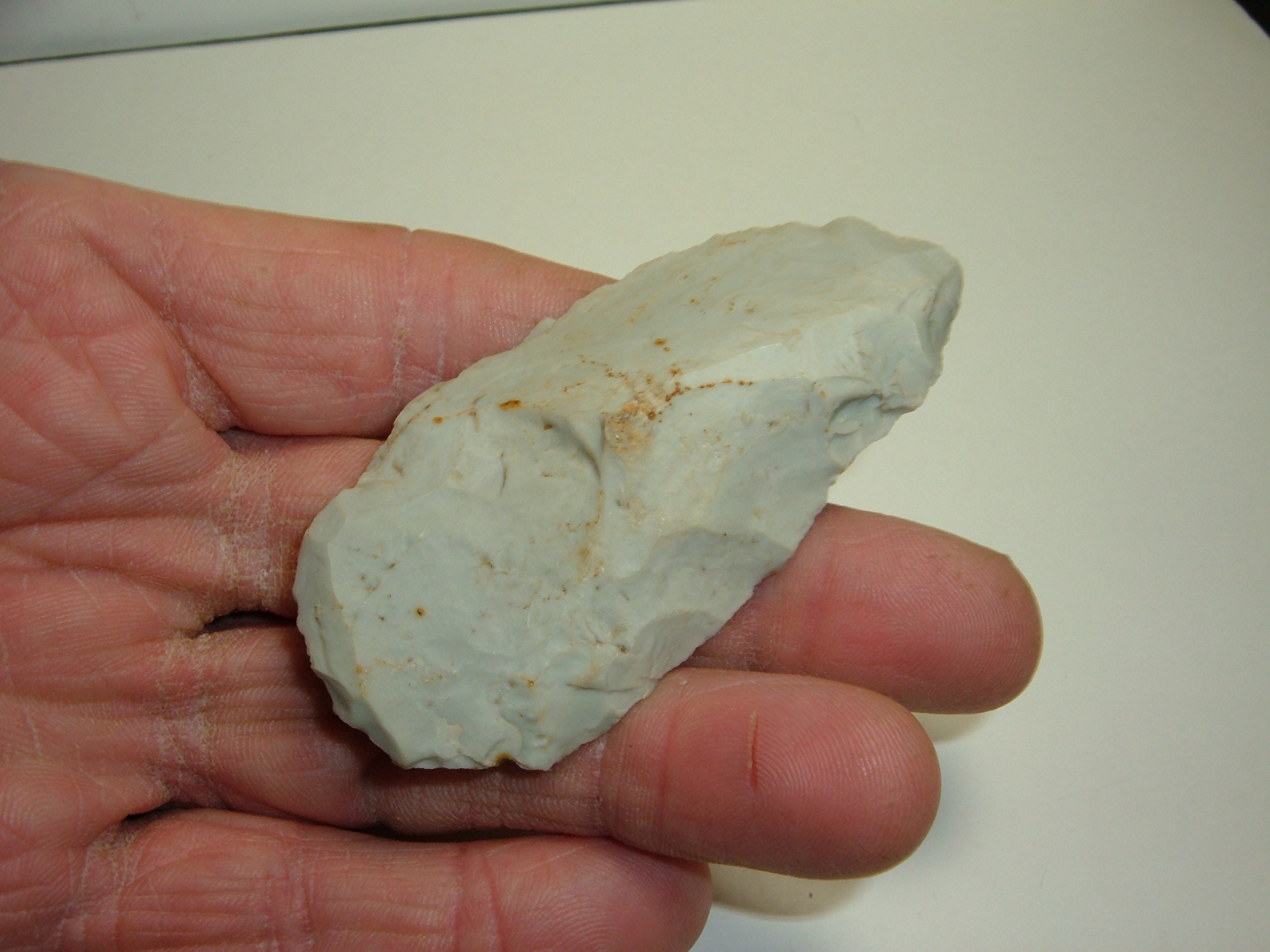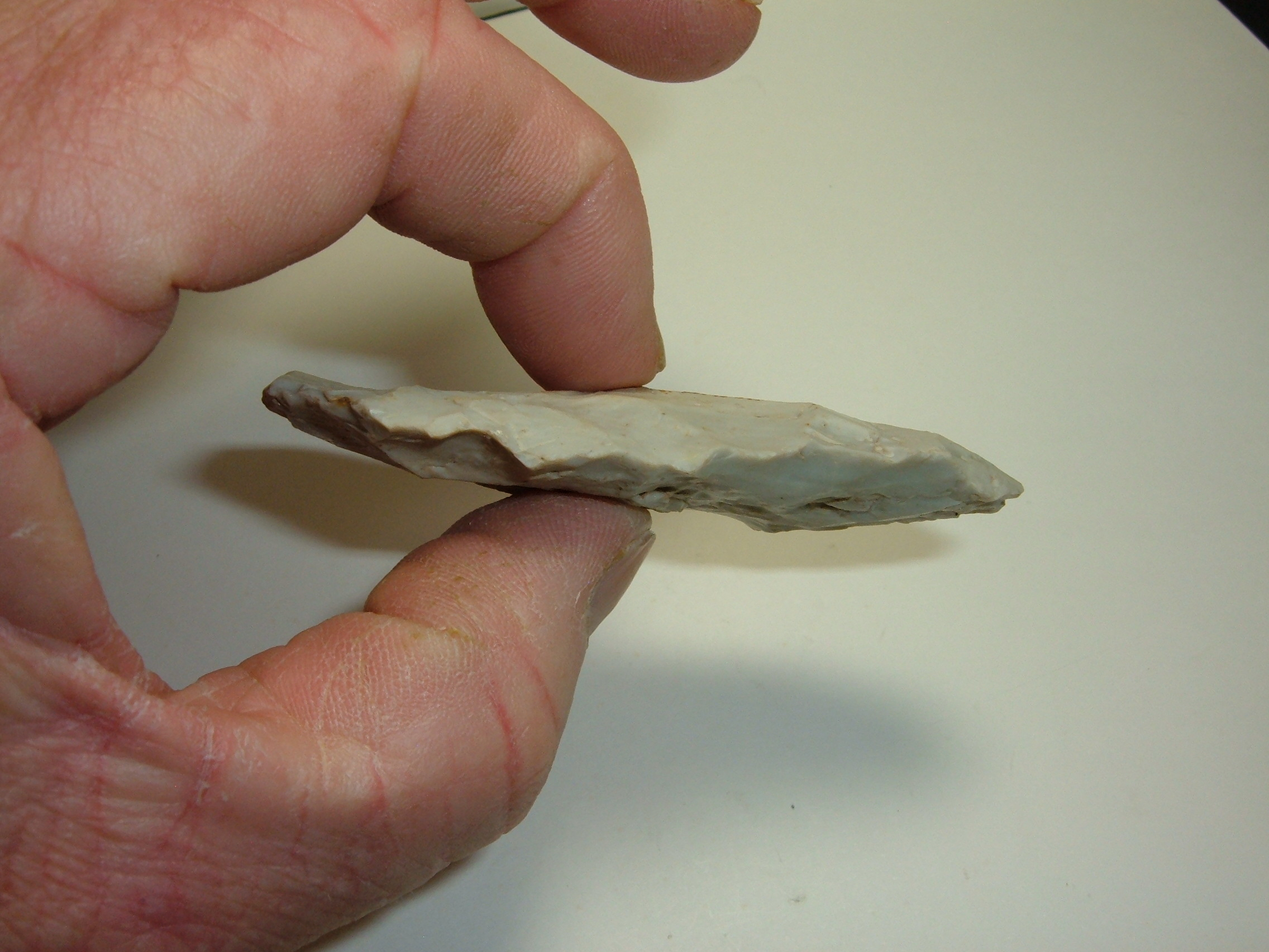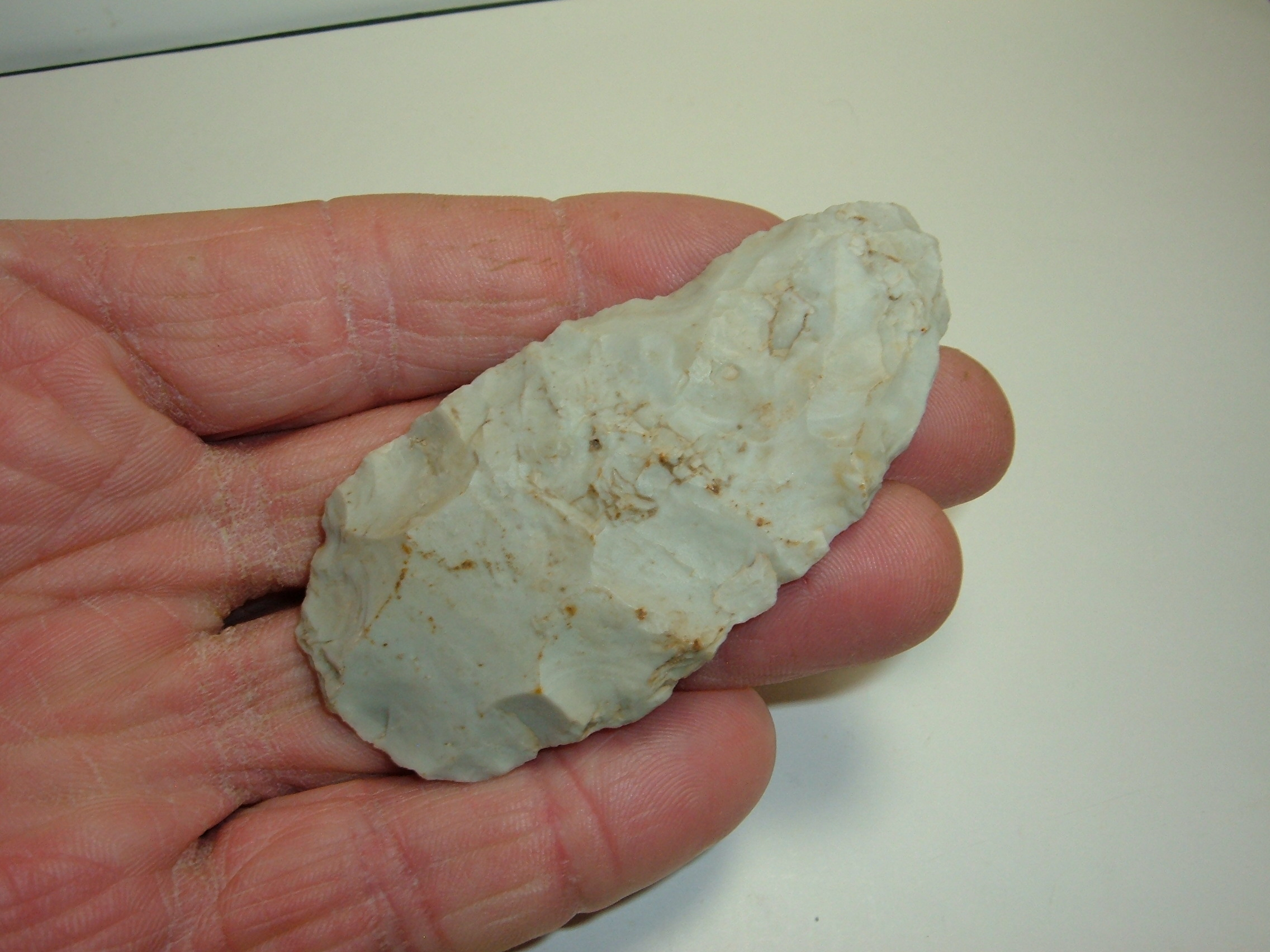 THIS WELL MADE ARCHAIC KNIFE WAS FOUND IN LICKING CO.OHIO AND IS NICE SIZE AT 3"! EX JOHN & GEOFF ROTH, WELL FLAKED ARCHAIC PIECE!