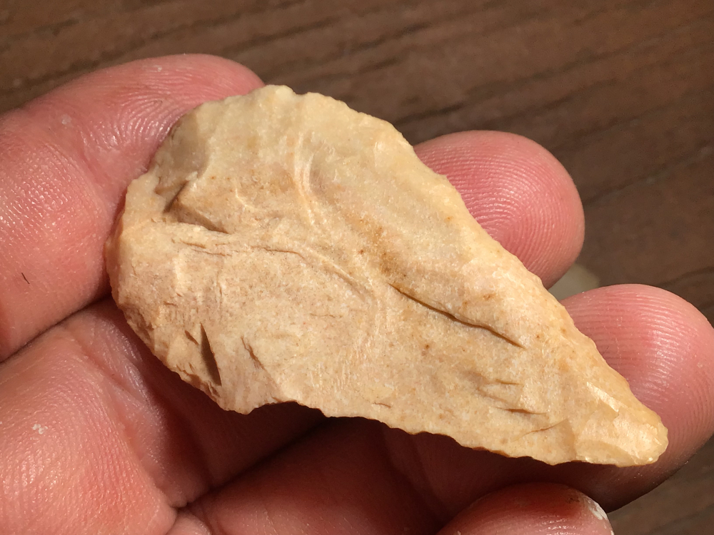 The ET is from Gillespie County and is thin and extremely well flaked with left hand bevels. When is the last time you saw a Desmuke? This is a nice one with a rounded tip from Starr County as are the other two although one is tough to type. As the eminent auctioneer, Heath Neyland says," You call it what you like". I will guarantee authenticity and satisfaction.