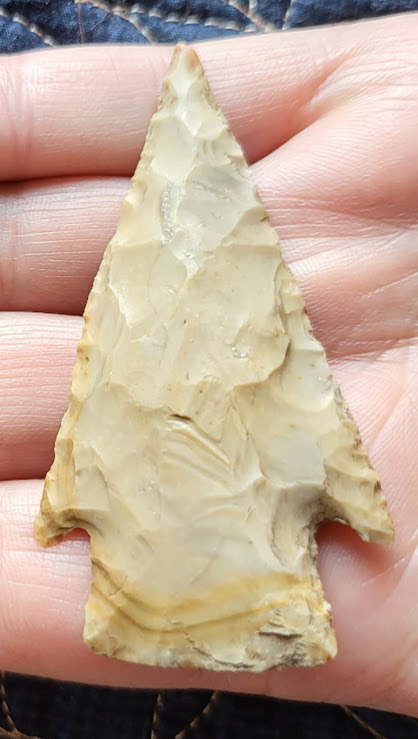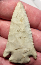 This nice Castroville point was discovered in Uvalde County, Texas. Its shape and flaking have both been well-preserved, and the material is tan branded chert. The arrowhead comes with a Black COA.