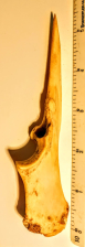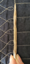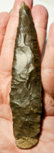 This unique, translucent Darl knife is extremely narrow and thin. It's carved from tan and gray chert and was discovered in Central Texas. It comes with a Rogers COA.