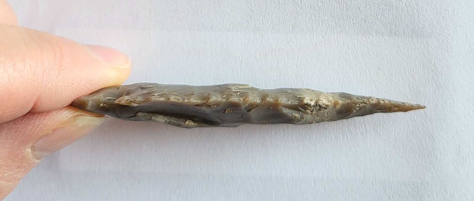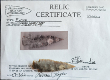 This large Ensor point has a nice serrated edge and was made from brown flint. It was discovered in Uvalde County, Texas and come with a Rogers COA.