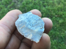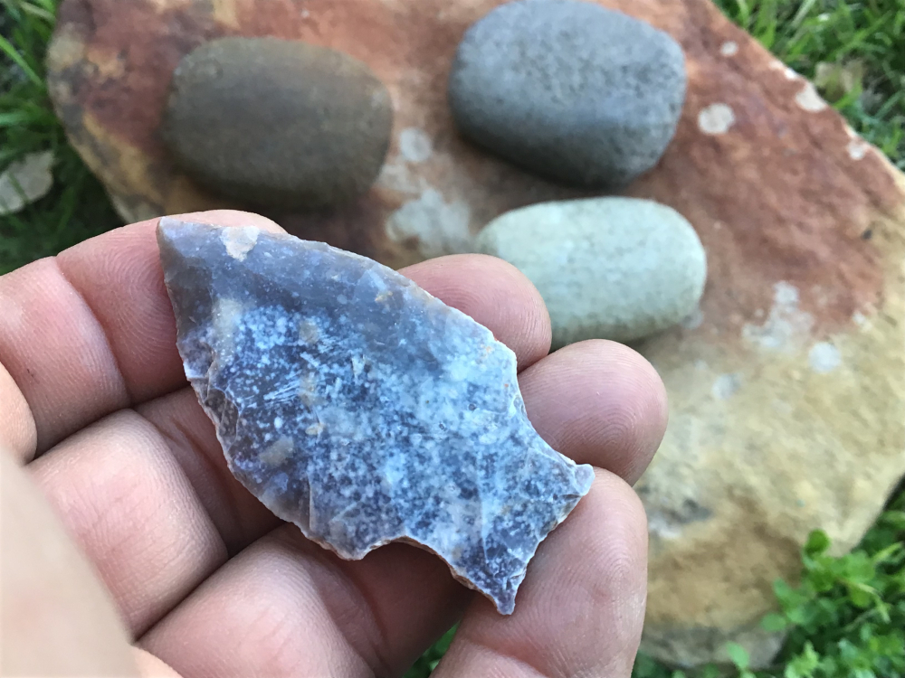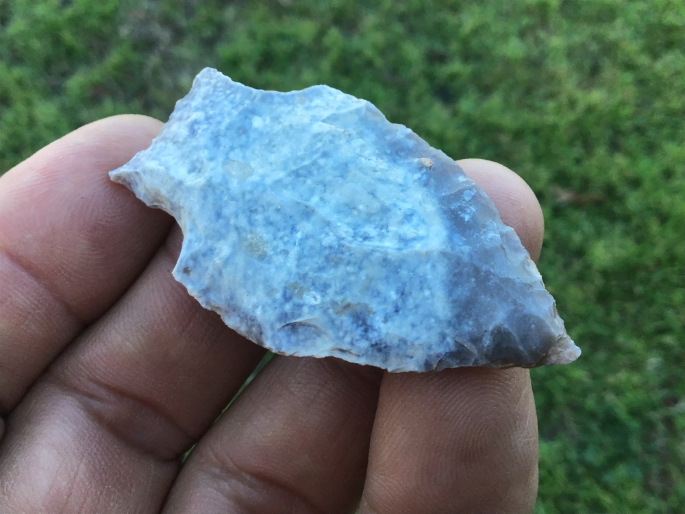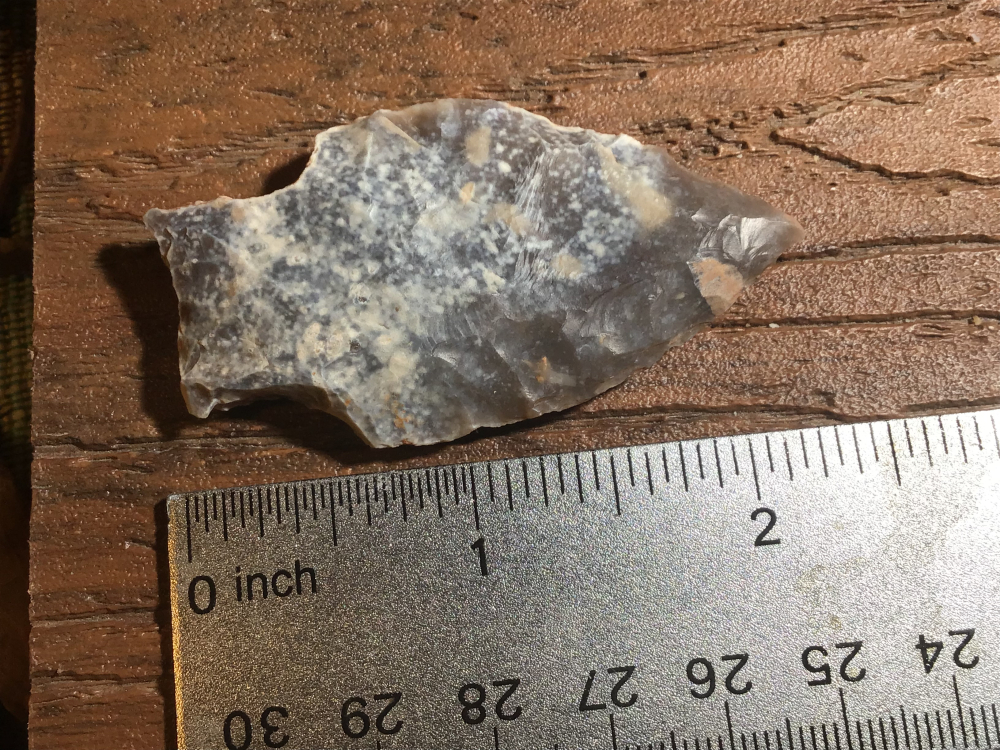 This Nolan point from Williamson County has the classic right hand bevels on the base and made of quality chert with heavy frost patina with a material color change near the tip. I have the shipping and it comes with a German coa.