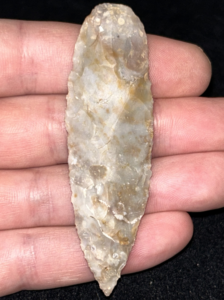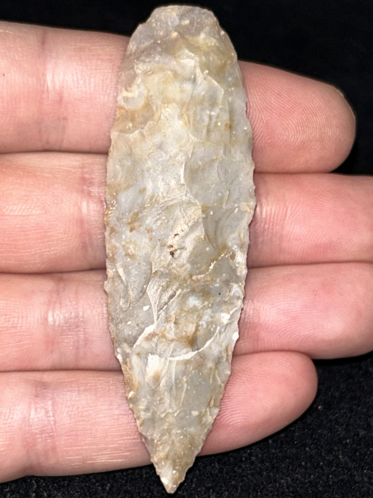 A fantastic Adena found in central Kentucky. Made from colorful Boyle chert with excellent patina and mineralization. Well made with nice flaking and sharp tip.