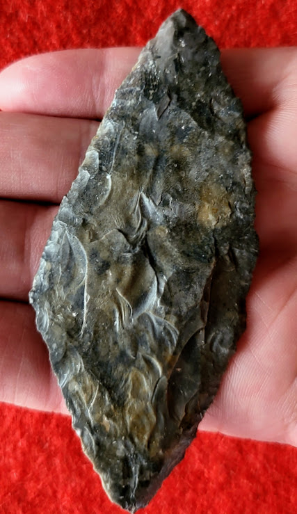 This is a very nice Harahey 4-bevel blade made of Foraker chert. The piece was found in Mercer Co., Missouri and comes with Roy Motley and Maury Meadows COAs.
