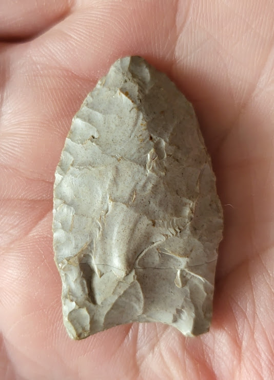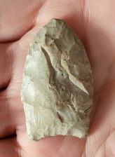 This Plainview is carved from a light grey colored chert, and it was discovered in Oldham County, Texas. The arrowhead comes with a Rogers COA.