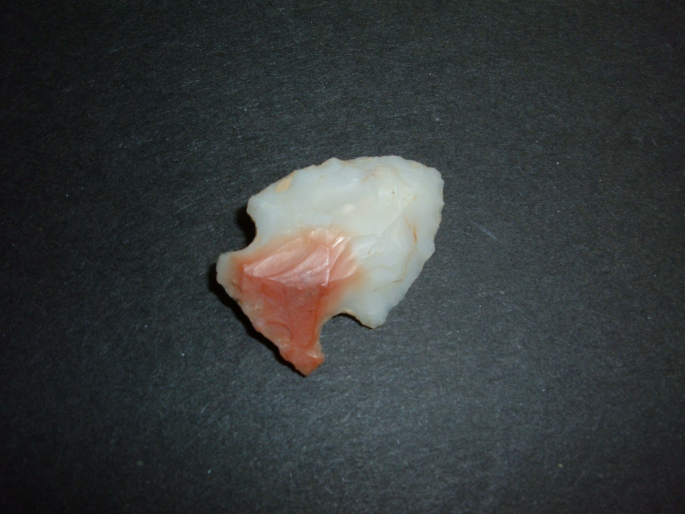 THIS FINE LITTLE ARCHAIC SIDENOTCH POINT ONCE RESIDED IN THE FAMOUS BOB CONVERSE COLLECTION AND MEASURES 1 1/4"! MADE FROM BEAUTIFUL FLINT RIDGE CHALCEDONY THIS WAS FOUND IN COSHOCTON CO.OHIO AND IS PICTURED ON PAGE 140 OF "THE ARTIFACT COLLECTION OF ROBERT N.CONVERSE. A BEAUTIFUL COLORFUL LITTLE SIDE NOTCH FROM ONE OF THE BEST KNOWN COLLECTIONS IN OHIO!!!