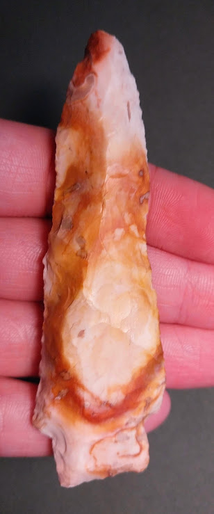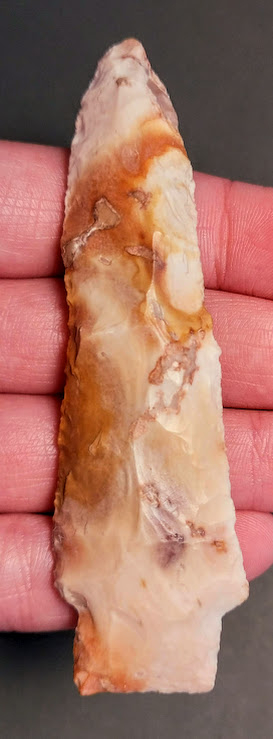 This colorful Mulberry Creek point is just made for a color frame. It was found in Prentiss Co., Mississippi and come with a Dwain Rogers COA.