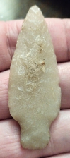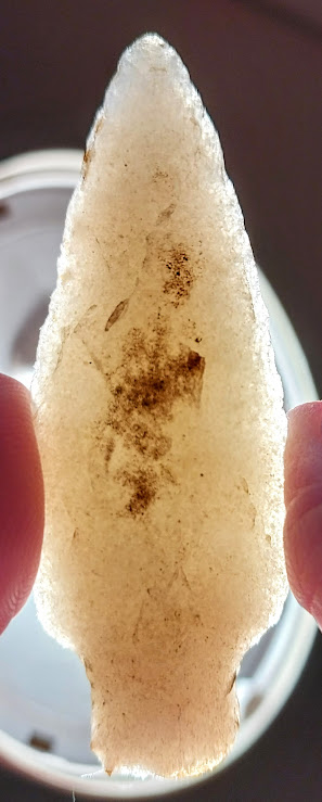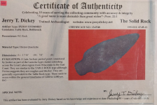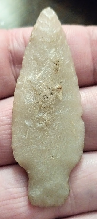 Durst Stemmed are relatively rare points for Wisconsin. This particular Durst Stemmed point was found in Rock Co., Wisconsin and comes with a Jerry Dickey COA. Not only is this point make out of highly collectible Hixton Quartzite, but it has parallel flaking in places which is extremely hard to achieve in this material. This is a stunning example of a hard-to-find point made from Hixton quartzite.