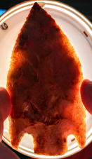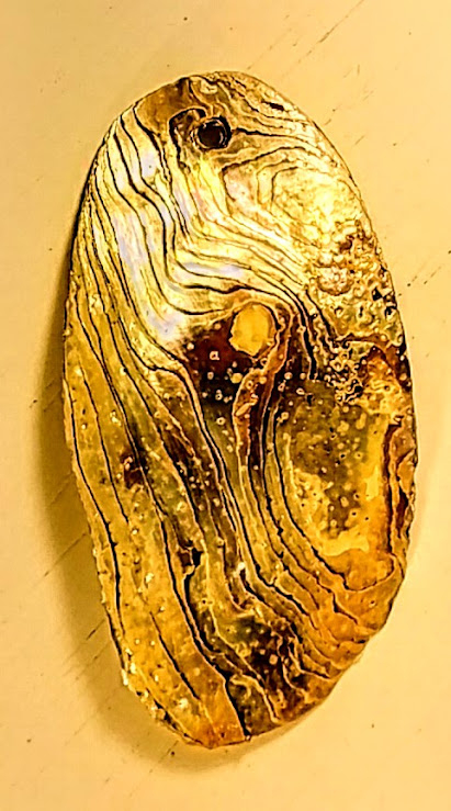 This cache of 15 abalone Shell Pendants was found in Yolo Co., California. The camera doesn't pick up the fantastic color highlights to be found in the Pacific ocean abalone shell, but they are filled with vibrant reds, greens, and blues. A former owner of the cache coated them in a light lacquer to protect them from deterioration and preserve the colors.