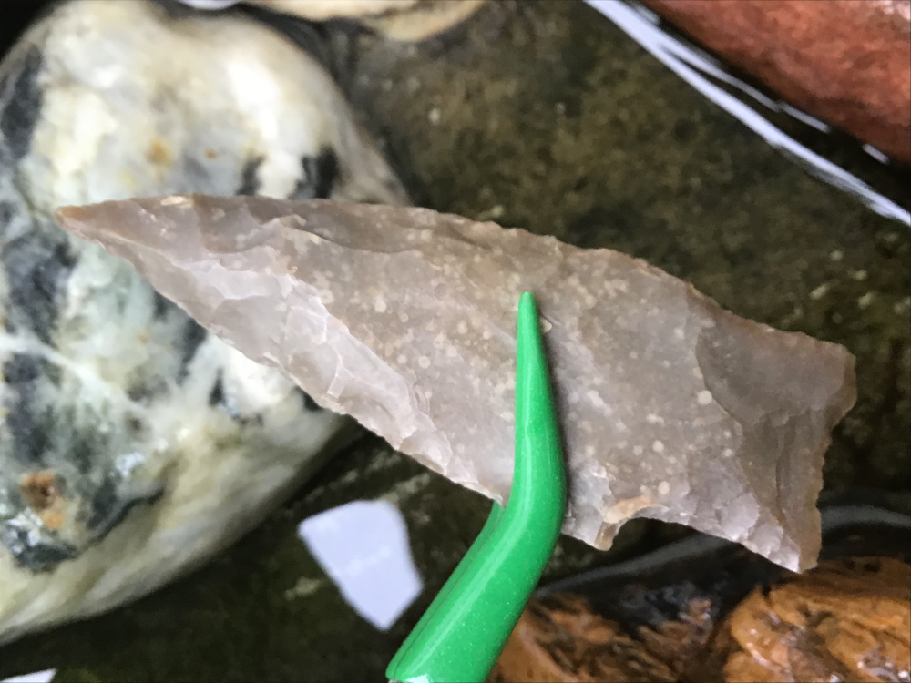 From the Lee County Gold Sands Site, this Oakalla point has a fine tip and quality semi-translucent brown chert. Finder is on the David Crain COA. I have the shipping.