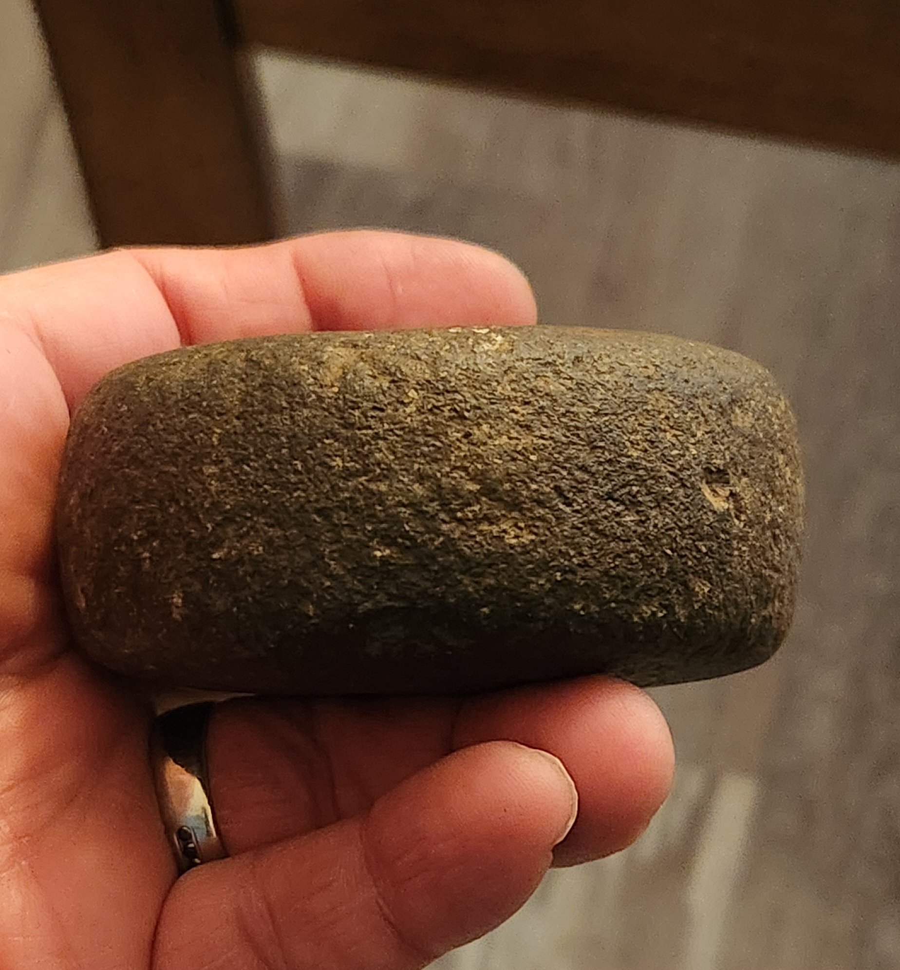 Very nice biscuit discoidal . Tennessee. 3 and 1 l/4 across. Made of black granite, This has been in my collection for many years. An awsome Mississippian period artifact. Guaranteed authentic. 10.00 dollars shipping.