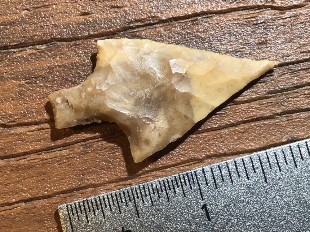 This is a very thin example with a needle tip. Recovered in Gillespie County, it has fine barbs and a long contracting stem. It comes with a Carlos Black COA and I have the shipping.