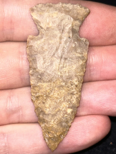 A very fine Bakers Creek found in Fleming County, Kentucky. Made from colorful Boyle chert that is well patinated with nice fossil inclusions. Great workmanship and form with a needle tip.