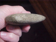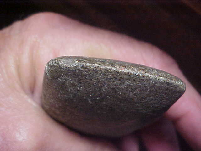 Out of Macon County, Illinois, FULL history to the buyer of this granite Woodland (Adena or possibly Hopewell) Celt. The tiny collection had those two types of points, so the chance is something like 99.9% certain who made the piece. As the style is "Square End" I'll refine that to Hopewell Culture as my 'best guess'. Length is slightly under 4&1/8", 1&11/16" 'height', and max thickness of 7/8". The slight wear to the bit is the only damage. Overall polish (and patina) are really good, every detail is guaranteed authentic. The family related that the few artifacts in the collection were found in the mans' garden--on high ground overlooking the Sangamon River. Shovel, anyone? Maybe an 8N and a bottom plow?. Shipping is $9.00, checks or M.O>s welcomed. Sorry, I do not use paypal--Roy A.