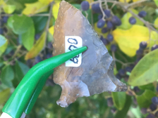 Recovered near Cypress Creek in Harris County, this Keithville has heavy creek staining and left hand bevels. The base is ground with heavy thinning strikes. I have the shipping and it comes with a Bill German coa.