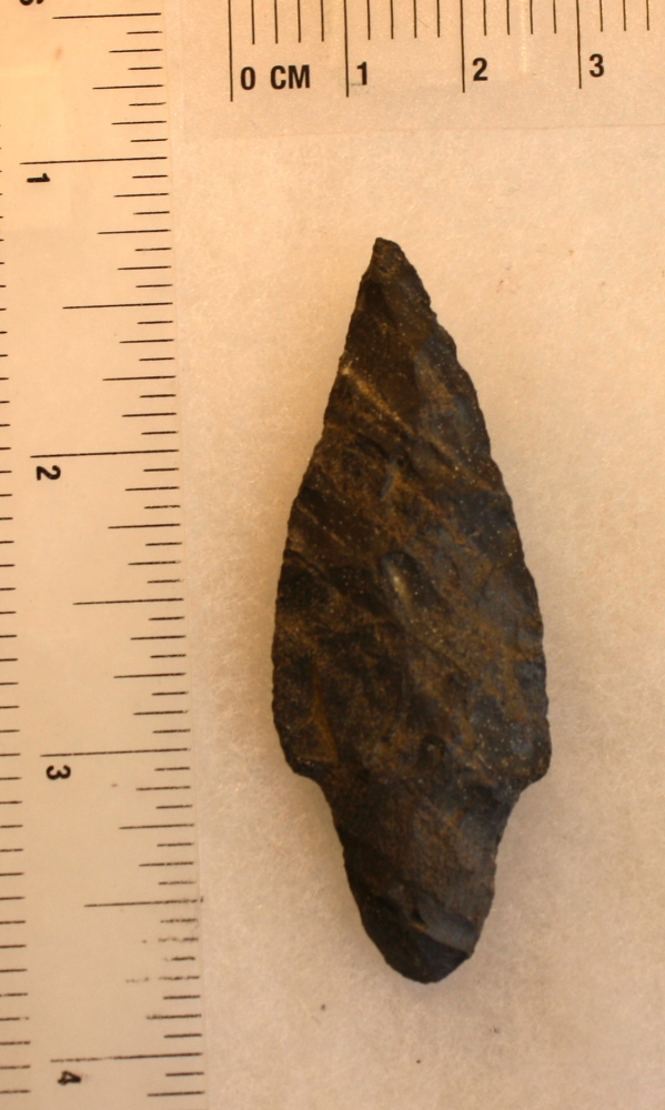 This artifact is made of a dark black, charcoal, and gray petrified wood material. This type of petrified wood is all over the East Texas Piney Woods Region. Due to the nature of the sandy soil composition, petrified wood was a common tool making material in the region.