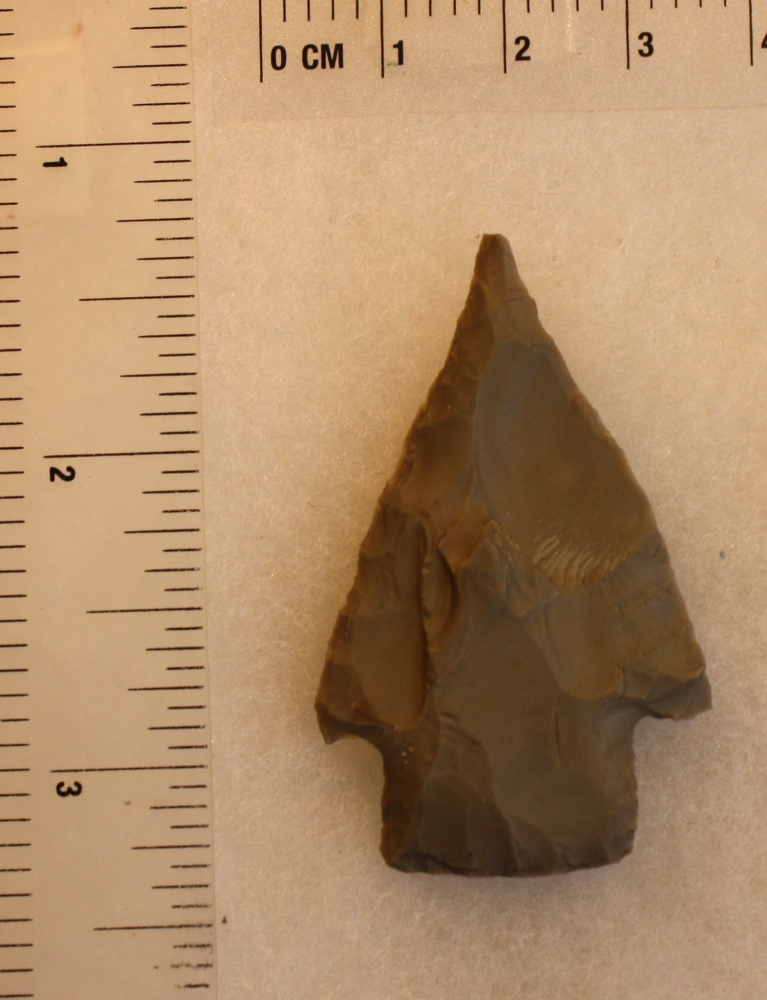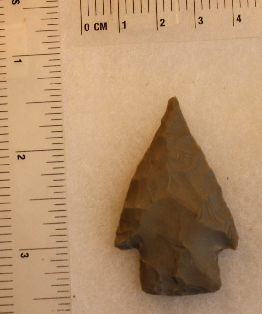 This Lee County artifact is made from a dark gray material, probably a variation of Edwards Chert.