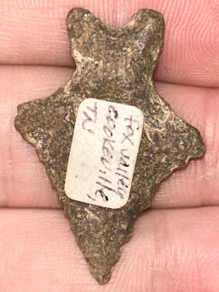 An outstanding Fox Valley from Cookeville, Tennessee. Made from heavily patinated Fort Payne chert. Nicely made and in good condition with classic form. Ex: Robert Overstreet collection of the Overstreet Identification and Price Guides.