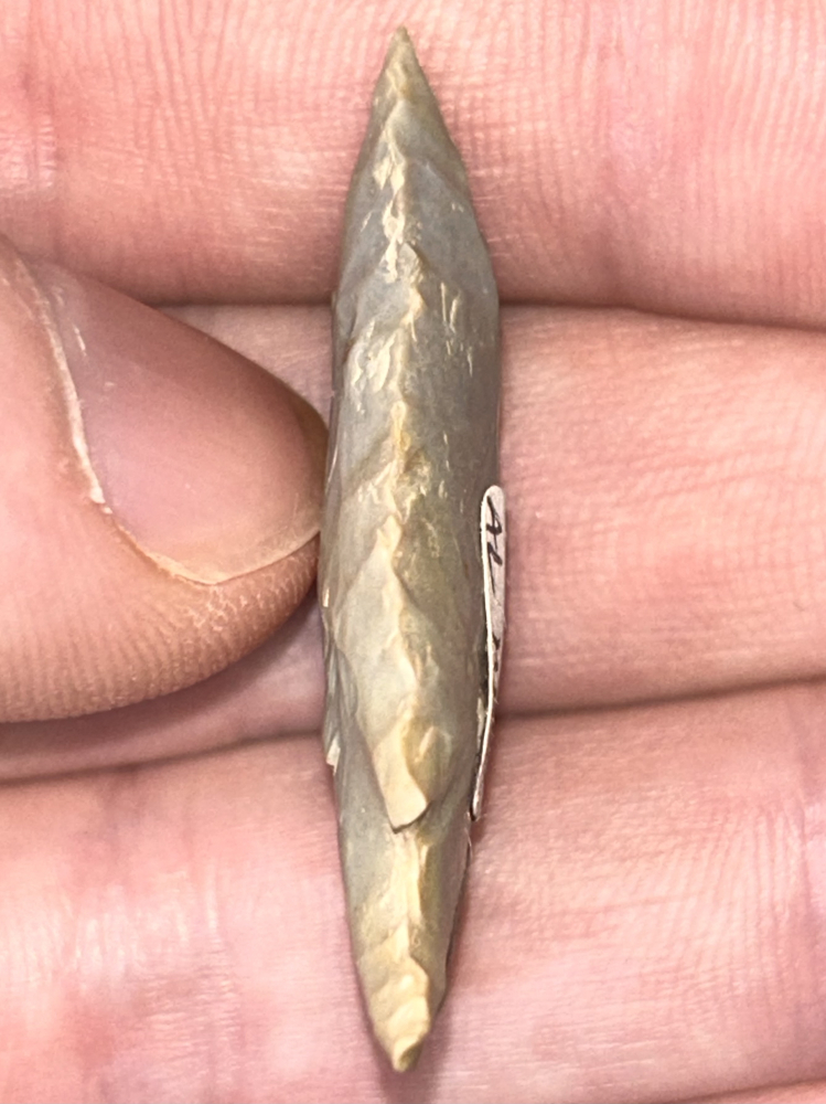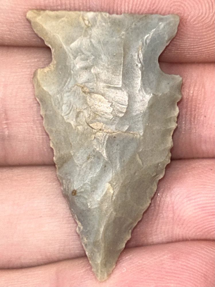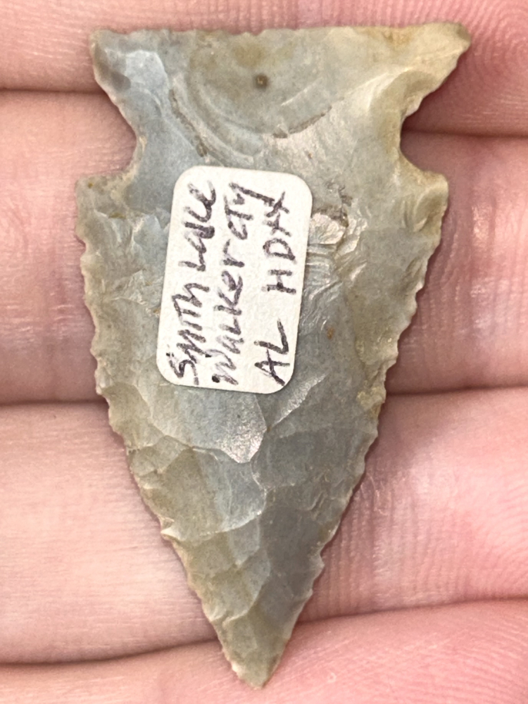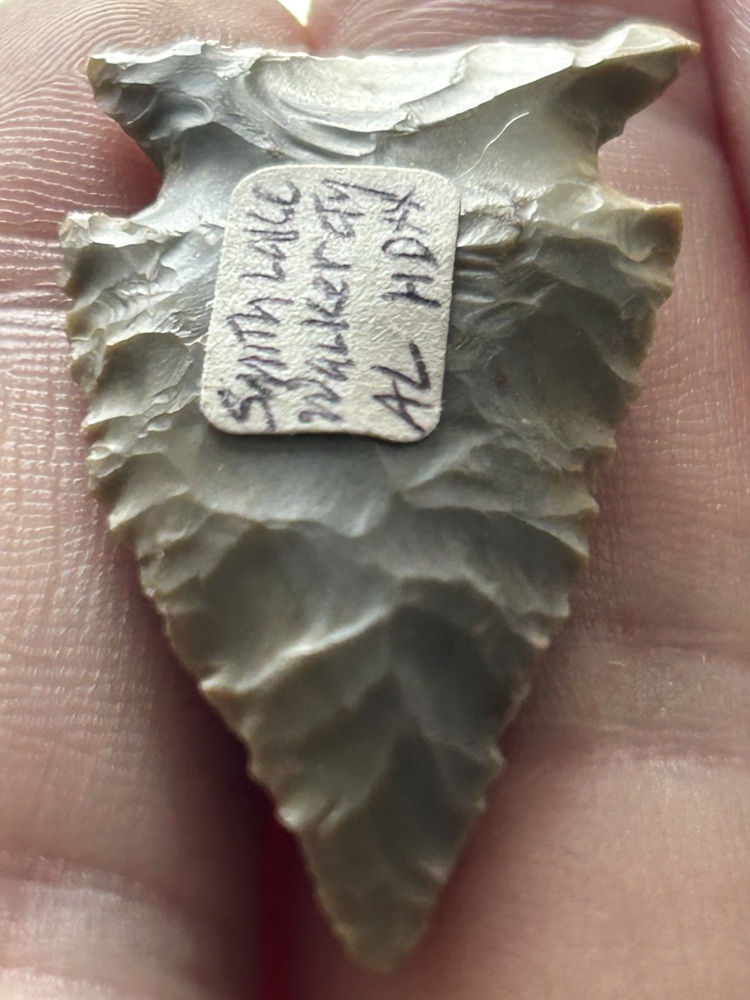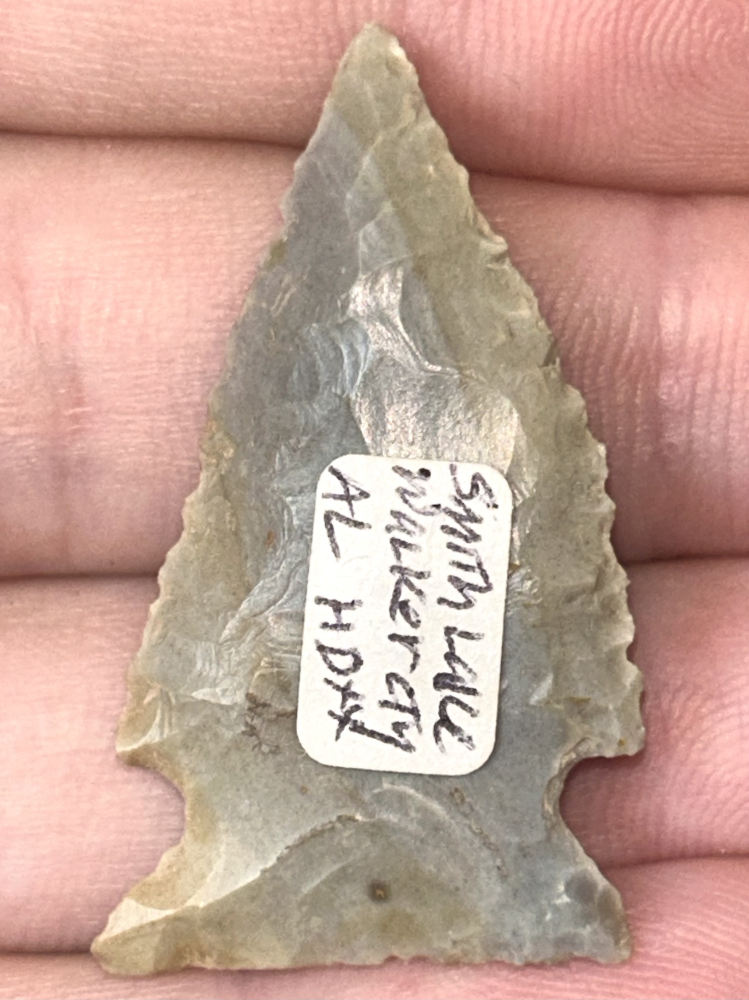 A fabulous Palmer from Smith Lake, Alabama. Made from well patinated glossy Fort Payne chert. Excellent workmanship with light serrations and basal thinning. Ex: Robert Overstreet collection of the Overstreet Identification and Price Guides.