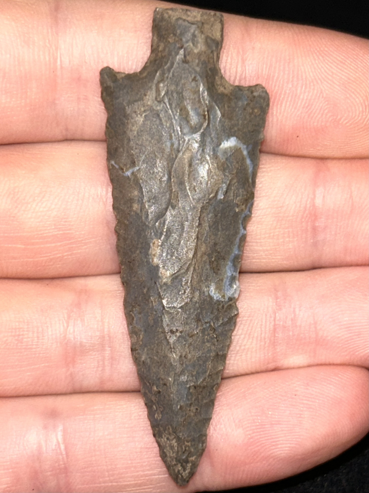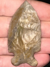 A fabulous Smithsonia found in Madison County, Alabama. Made from attractive grey-brown Fort Payne chert. Good form with excellent flaking. Ex: Robert Overstreet collection of the Overstreet Identification and Price Guides.