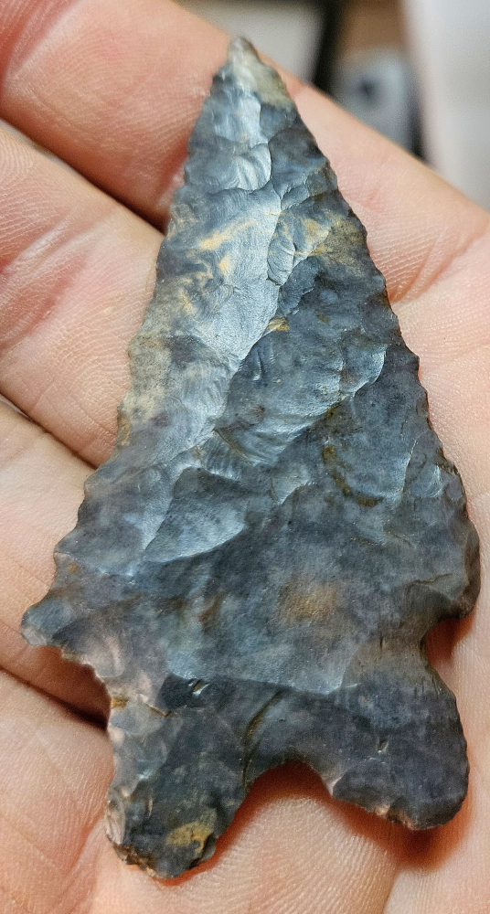 Fine Maccorkle point from Wayne Co, Ohio. Super workmanship, and stunning colorful coshocton chert. Measures 2 1/4 inches long. Very nice thin point for the money.