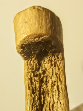 This is one of the largest Fossil Rib Bone Scraper every found at 14 inches in length. It is a first stage scraper in that the entire rib is present and the non-scraping end is drilled. The rounded scraping edge shows use polish. This item was found on St. Lawrence Island, Alaska. If you are a collector of unique items, this beauty is right down your alley!
