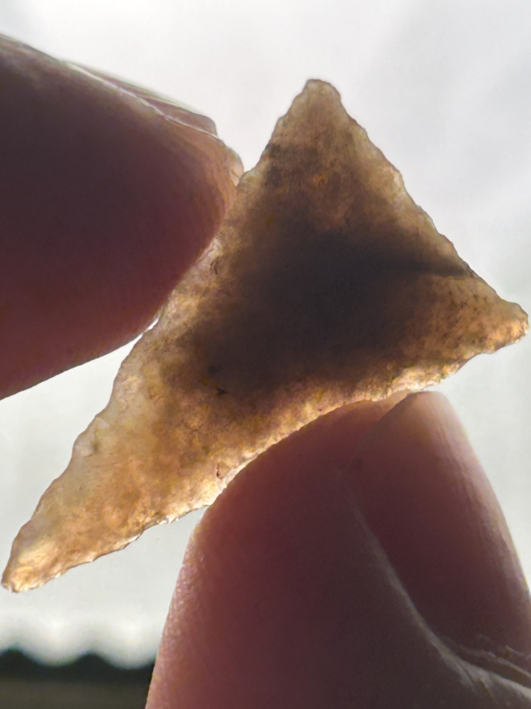 A very fine Madison triangle from the Grayson/Hardin/Meade County area, Kentucky. Made from beautiful highly translucent chalcedony. Great symmetry and flaking with lightly serrated edges. Ex: Dale Rector collection.