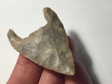 Very pretty Andice with a snabbed base. It is thin, well flaked, with a nice tip and both barbs intact. Out of the Helen Leggett Collection, Recovered near Waco, Texas, I have the shipping and will guarantee authenticity and satisfaction