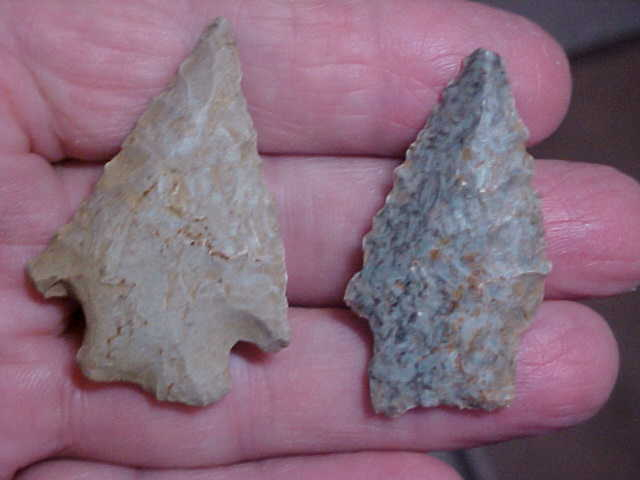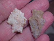 $8.00 shipping, so the total price (no buyers' premium,lol) is $50.00 These six, Kirk culture points of their various styles, come from along creeks in the Monticello, Kentucky, area. No surprise, fossil chert (Harrodsburg Chert) is the main lithic used--it's what they had handy. Any that aren't fossil chert are likely Boyles Chert. The longest is the stemmed-bifurcate point at 1&7/8", with the cornernotched at 1&13/16". The blue fossil chert Stemmed-Serrated measures 1&3/4"--the dart points are obviously smaller. Neat, authentic 7500 BP points. I welcome checks (cash is fine) or money orders, but do NOT use paypal-type payment systems--Roy A.