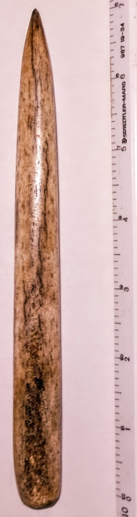 This is an extremely fine example of a large, Polished Fossil Bone/Antler Awl found on St. Lawrence Island, Alaska. The striations are indicative of fossil antler or ivory. They don't come much better than this one!