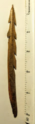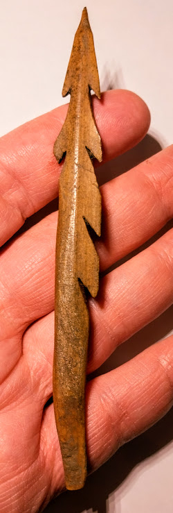 This is an excellent example of a carved Eskimo Fossil Bone Lance Head. It was found on St. Lawrence Island, Alaska. They don't get much better than this.