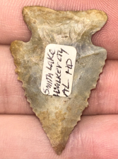 A fabulous Palmer from Smith Lake, Alabama. Made from very colorful and glossy Bangor chert. Great form with finely serrated edges and heavily ground base. Ex: Robert Overstreet collection of the Overstreet Identification and Price Guides.