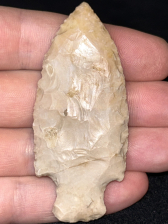 A very nice Flint Creek found in Walker County, Alabama. Made from a two tone medium grey-brown Fort Payne chert. In good condition with excellent flaking and serrated edges. Ex: Robert Overstreet collection of the Overstreet Identification and Price Guides.