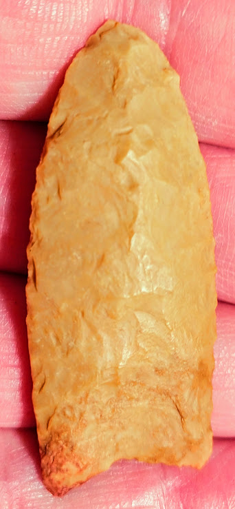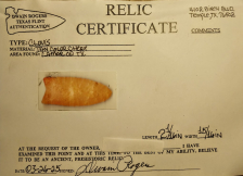This well-formed and symmetrical Clovis Point is fluted on both sides. It was found in Lamar Co., Texas and comes with a Dwain Rogers COA.