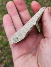 Awesome Covington blade/scraper. Very interesting Covington knife that has been converted to a large scraper and has use wear. If this one doesn't sell it stays, really cool piece. Measures 3 1/2 inches long and 1 3/4 inches wide. Recommended for the tool lovers!