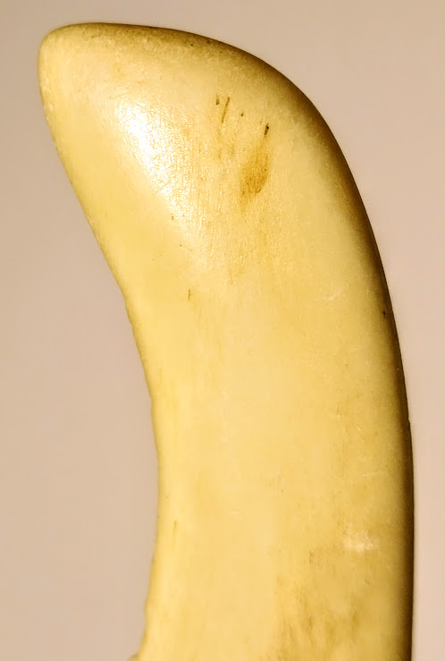 This polished Fossil Bone Eskimo Ice Knife is shaped to fit perfectly in the hand. This unique artifact was found on St. Lawrence Island, Alaska.