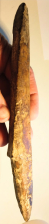 This Eskimo, Polished Fossil Bone Ice Tester is a functional artifact that was attached to the handle end of a harpoon and used to test the strength and firmness of ice while hunting. it is very heavy and dense. It was found on St. Lawrence Island, Alaska.