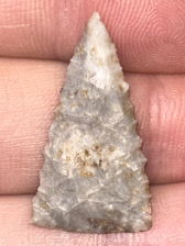 A fine Pinetree found in Marshall County, Alabama. Made from well patinated medium brown Fort Payne chert. Well made with serrated edges and ground base.