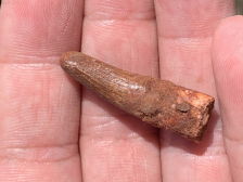 A 1 3/8” fossil Spinosaurus tooth with case included