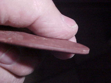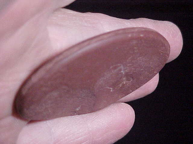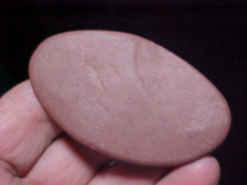 The finder hunted along the Ohio River in Spencer County, Indiana--numerous Hopewell camps and lithic workstations line that part of the Ohio (Adena as well, but not many Mississippian camps, so based on the style of this red slate (or catlinite) Gorget Preform, I'm assuming it's Hopewell--those people were traders, always looking for unusual materials for their tools, etc... This piece was never drilled, but I find (under magnification) what I think are two 'marker divots' where the maker planned to drill--see the pencil-point photo. Again, they're so tiny of 'marking spots' that it could also be I'm convincing myself that's where the bore holes would have been--you may find some other 'markers' that convince you the holes would have been elsewhere. Length is just under 2&7/8", width is 1&5/8". The thinness is remarkable, 3.5 sixteenths. The entire circumference is ground, shaped, the faces ground it a very, very smooth surface. Every detail is guaranteed authentic. Shipping is $8.00, with checks or M.O.s how I welcome payment. Sorry, I do not use paypal--Roy A.