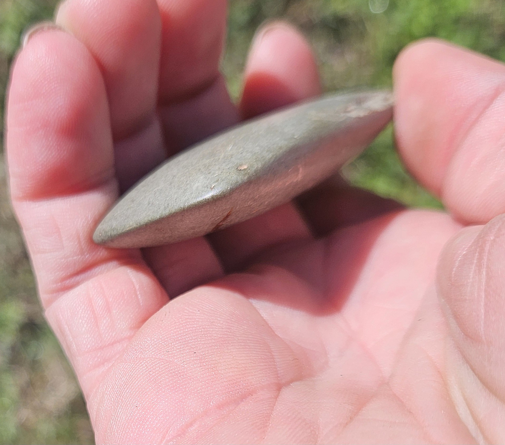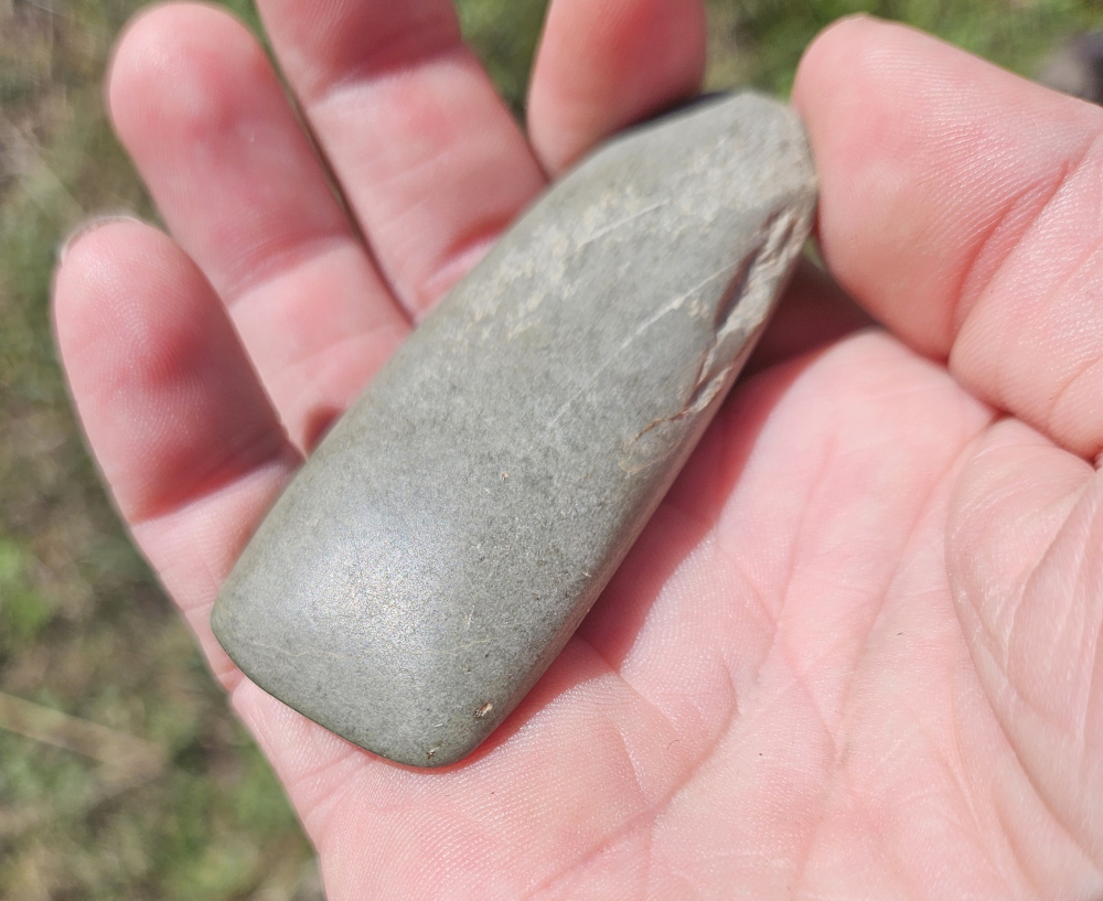Super fine chisel legally recovered around Kinkaid Mound. Beautifully made from greenstone with a very nice polish. Measures 2 3/4 inches long by an inch wide. Fabulous small for any size collection!