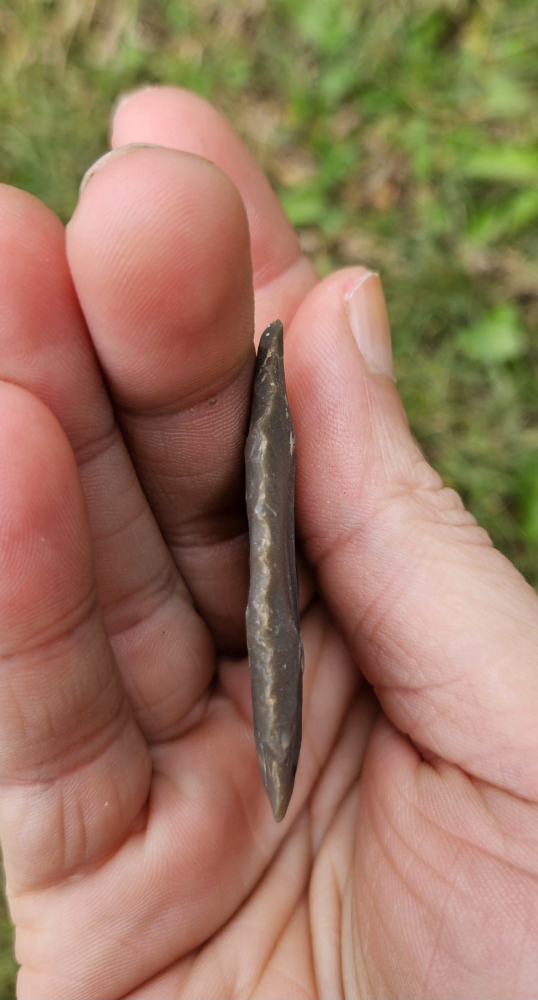 Nice Wade that was found in Dickerson Cave in Todd County, KY. Extremely well made and has undergone some resharpening and is wafer thin. Measures 1 7/8 inches long. Fine addition for your collection.