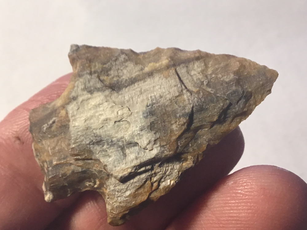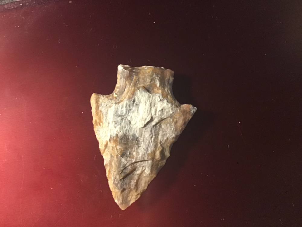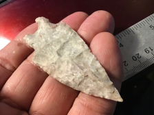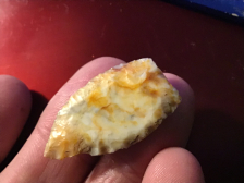 Brightly colored Petrified Wood recovered in Rinity County, TX. It has a nice tip and barbs, probably a Carrolton point. Edges show use wear. I will guarantee authenticity and satisfaction.