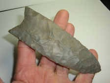 HERE WE HAVE A BEAUTIFUL SUPER COLORFUL EOB C. FOUND IN FAIRFIELD CO.OHIO IT MEASURES 1 1/8" AND IS ILLUSTRATED IN BOB'S BOOK "THE ARTIFACT COLLECTION OFROBERT N. CONVERSE. IT HAS A BEAUTIFUL QUARTZ VEIN RUNNING THROUGH IT ON ONE SIDE, A REALLY DELIGHTFUL,COLRFUL LITTLE POINT!